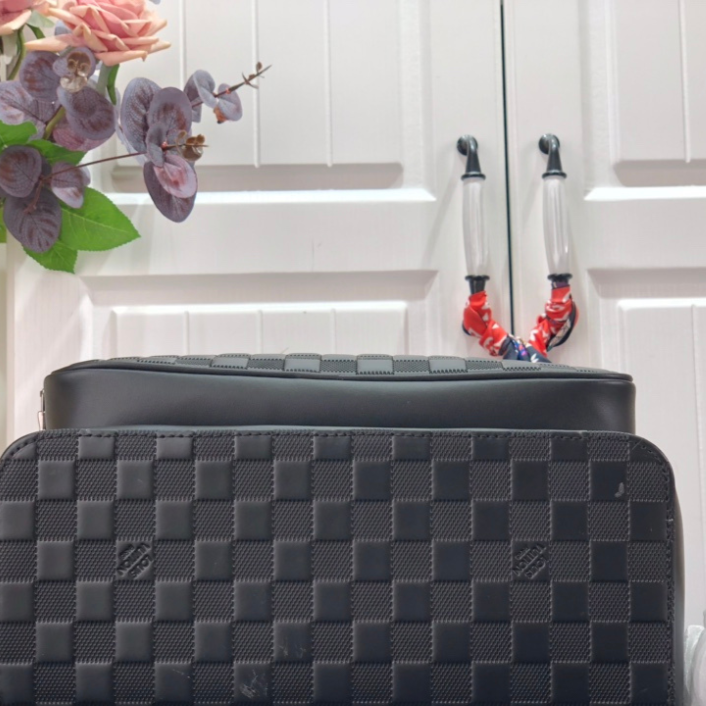 A mochila Campus é confeccionada em couro Damier Infini Astral Silver e vem com a emblemática padronagem xadrez da Maison em alto-relevo e um zíper prateado. O verso da mochila é em couro macio com um V oversized em alto-relevo. As alças de couro ajustáveis proporcionam conforto, e o bolso frontal tem espaço suficiente para acomodar um iPad.